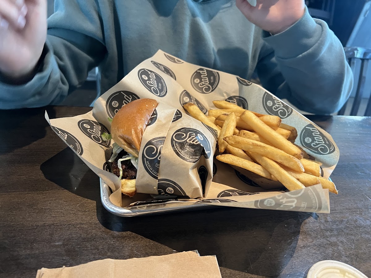 Step inside The Stand, and you’re greeted by a lively atmosphere adorned with bright blues and cheerful yellows, echoing the nostalgic vibes of the 1970s but with a modern twist. It’s the perfect place to kick back, grab a bite, and stay awhile, whether you’re catching the game on one of their TVs or enjoying a meal at their hardwood tables.